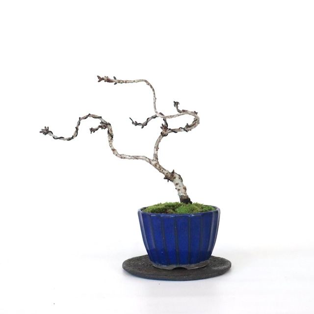 春には小さな白い花、 秋には紅葉し冬まで赤い実をつけます。 丈夫で育てやすいのも魅力。 一年を通して季節の移ろいを楽しめます。 水色の鉢に秋の紅葉、春の白花が映えます。 まだ若い樹ですが、しっかりと幹模様が入り、 これから育てていく楽しみな一鉢。 "カマツカコケモモ" バラ科シャリントウ属半常緑低木 高さ: 13㎝ (樹高 8㎝) 幅: 12㎝ 鉢:青藤色六角鉢 ※ご注文頂きましたら苔を貼って発送致します。 苔貼り不要の場合は備考蘭からお知らせください。 ※2025年8月撮影 ※一部針金がかかっています。 ※飾り板は付いていません -育て方のポイント- 【置き場所】 風通しの良い場所を好みます。 基本的には外の環境が適していますが、お家で飾りたい場合は、水やりの際に数時間外に置いてあげるなどしてお日様に当てる時間を作ってみて下さい。 夏の直射日光の強い日は日陰に置きましょう。 冬の寒さには比較的強いです。 【水やり】乾いたらたっぷり与えて下さい。 目安 春・秋 1日1回 夏 1日2回 冬 2.3日に1回 【肥料】春と秋にホームセンターで売ってる液肥(ハイポネックスなど)を規定量で薄めて、水やり代わりに与えると花がきやすいです。 -ご購入前に- ⚫︎お受け取り可能な日で配送日指定をお願い致します。生き物で傷みやすい為、最短配送時間で発送致します。 ⚫︎季節の変化により、撮影時の姿と多少異なる場合がございます。盆栽は樹の形を楽しむものではありますが、贈り物の場合など花や実の状態が知りたい場合、お気軽にお問い合わせ下さい。 ⚫︎盆栽が届きましたら、すぐに開封しお水を与えて下さい。ラッピングを致しますとお水をあげにくくなります。 贈り物用でご購入頂いた盆栽を、ご自身でお渡しする場合は、ラッピングの有無をご確認下さい。