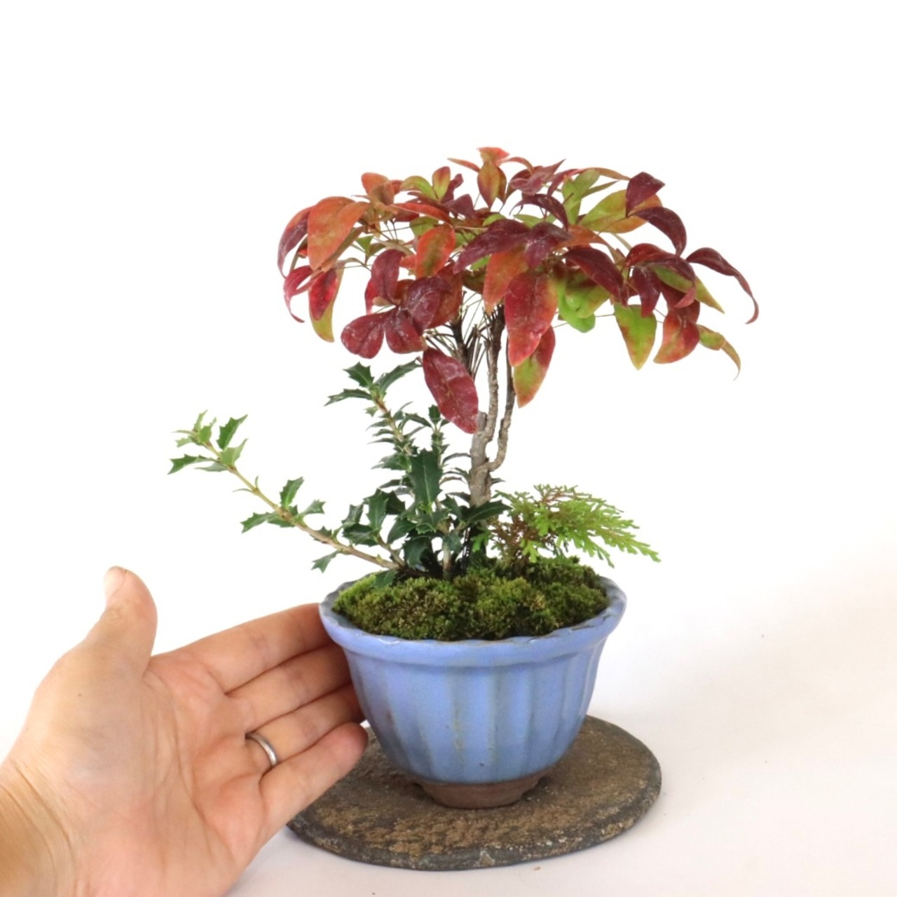⚫︎季節の変化により、撮影時の姿と多少異なる場合がございます。盆栽は樹の形を楽しむものではありますが、贈り物の場合など花や実の状態が知りたい場合、お気軽にお問い合わせ下さい。